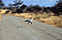 Der Sekretär ist ein ca. 1,25 Meter großer, ungewöhnlich hochbeiniger Greifvogel, der eine eigene Familie (Sagittariidae) bildet. Seinen Namen erhielt er wegen der schmückenden Federbüschel am Hinterkopf, wie die Büroschreiber im vorigen Jahrhundert, die die Schreibfeder hinter dem Ohr trugen. Die 3-4 kg schweren Vögel leben in den Kurzgrassavannen und Steppen Afrikas und auf Weideland außerhalb der Schutzgebiete, da sie als Schlangenfänger gewöhnlich nicht gejagt werden.